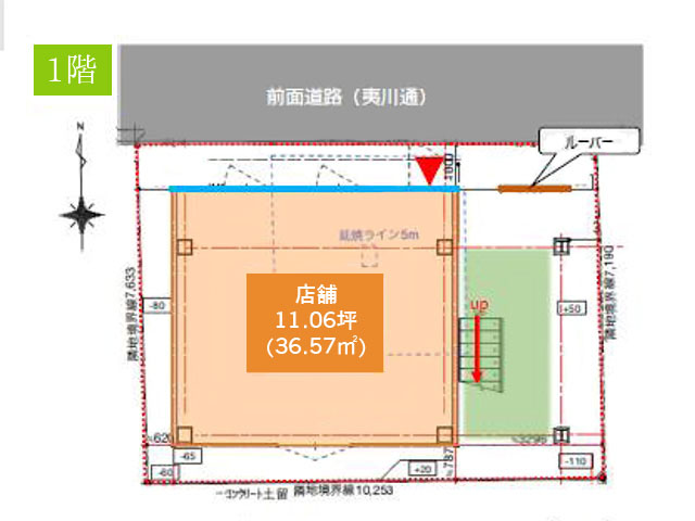 | ☑ ガラス面が広いため、京町屋が多い周辺建物の中では希少性が高く、目を惹く建物です。 | ☑ 店舗中央部に柱がない無柱空間で内容の自由度が高く、広いガラス面が認知度、集客力を高めます。 |
