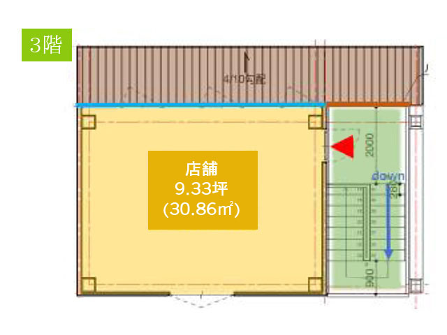| 階数/貸室 | 1階 : 33.40㎡(11.06坪) 2階 : 33.40㎡(11.06坪) 3階 : 27.69㎡(9.33坪) |
